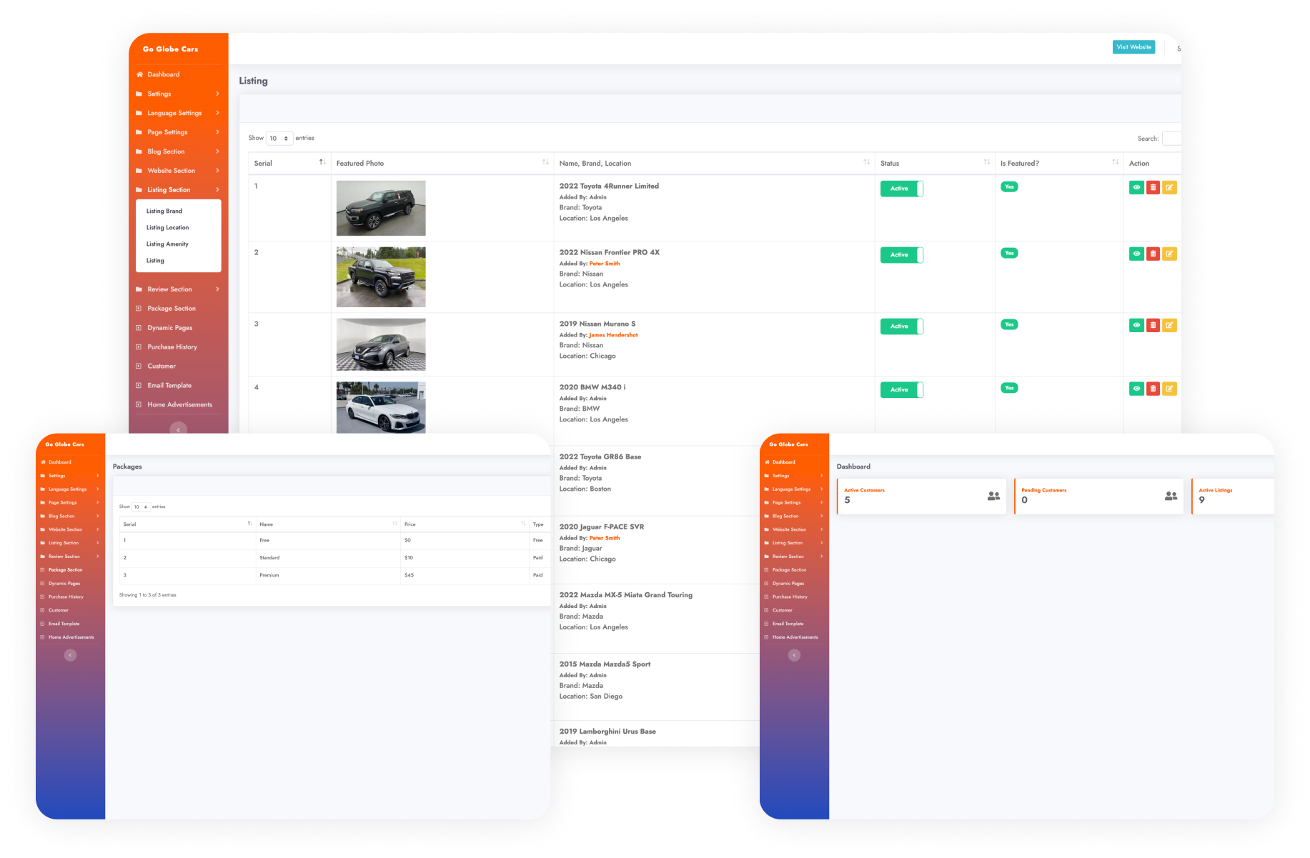 • User can add, edit, delete any listing from overall listing or specifically brand listing.