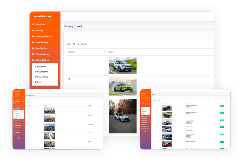 Admin supervised listing, featuring location customization, and affiliating them with specific brands. This feature streamlines methodical arrangement and seamless browsing experience on the website for car purchases.